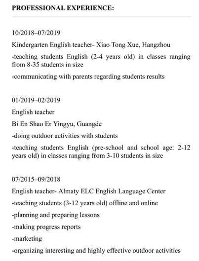 面試詳情:『杭州或上海』的用人單位可約該外教面試