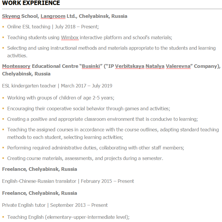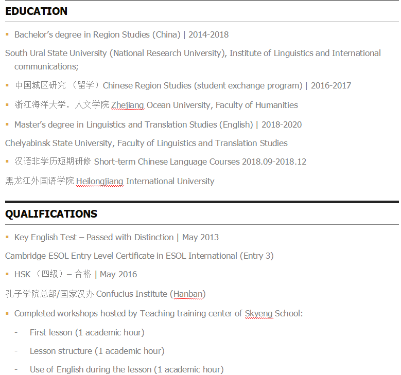 國(guó)籍: 俄羅斯 求職意向: 教師