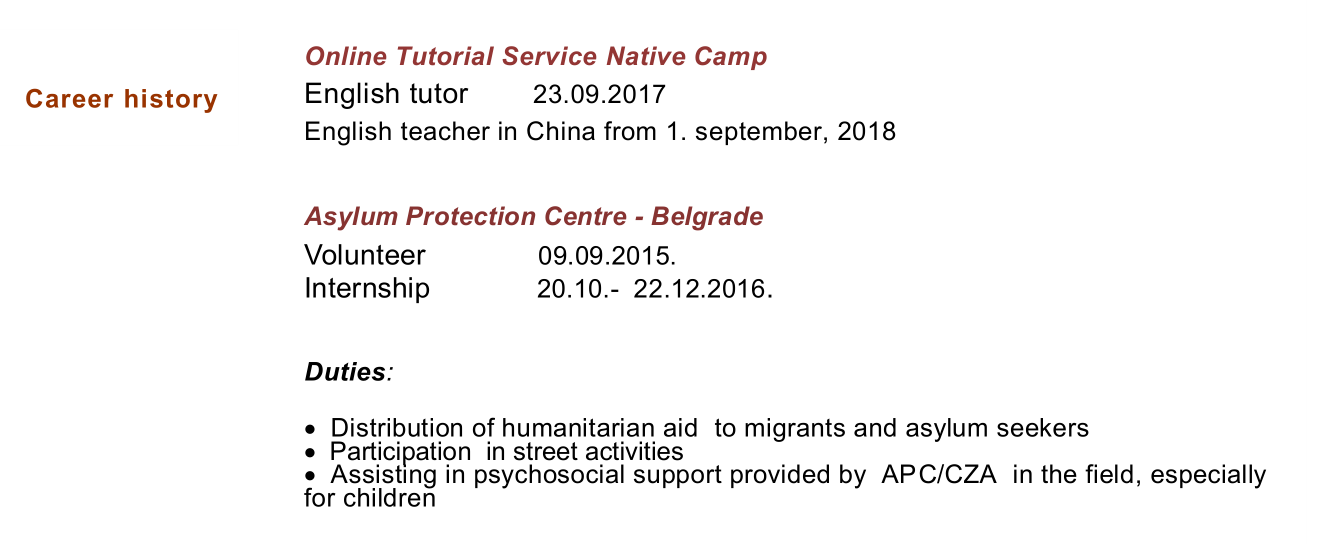 國籍: 塞爾維亞 求職意向: 教師