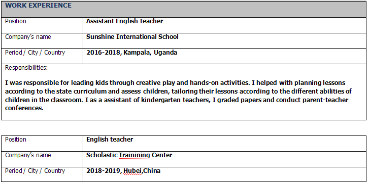 國籍: 塞爾維亞 求職意向: 教師
