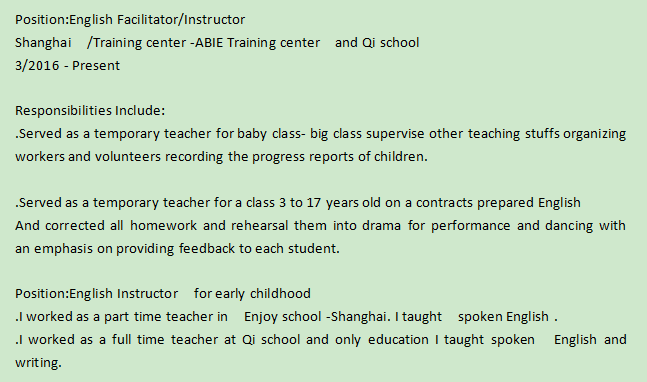 國(guó)籍: 哥倫比亞 求職意向: 教師
