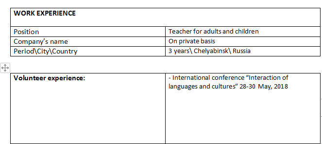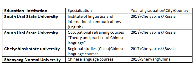 國籍: 俄羅斯 求職意向: 教師