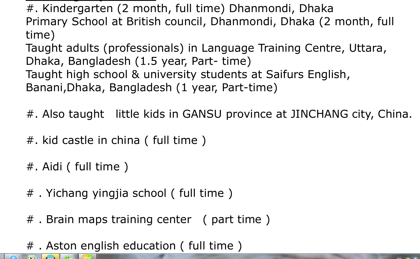 國籍: 其他 求職意向: 教師