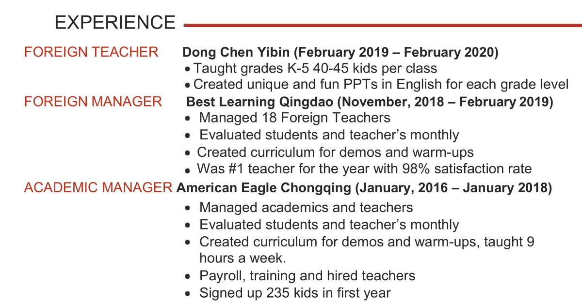 Mark+美國男+本科+教學類工簽+4年中國教學經(jīng)驗+求職成都或宜賓,最好管理崗位,英語教師也行(最好小學),培訓機構也行(最好管理崗位,高薪)+稅后22k以上加住宿+目前在宜賓,一個月內(nèi)到崗,目前已有其他城市的offer(25~30k),但是不想換地方 |