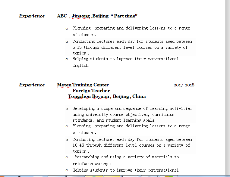 國籍: 未知 求職意向: 教師