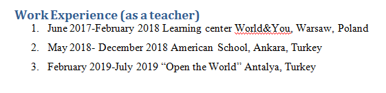 國籍: 烏克蘭 求職意向: 教師