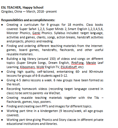 外教簽證自理,求職地不限,幼兒園職位。 |
