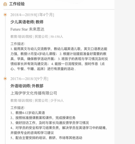 面試詳情:『上海浦東』的用人單位可約該外教面試