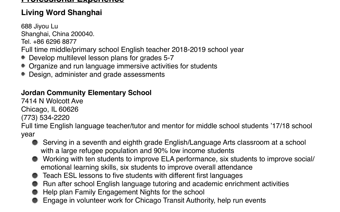 國籍: 美國 求職意向: 教師