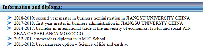 Amel +摩洛哥美女+碩士+自理學(xué)生簽+求職浙江及附近職位+目前在浙江,可盡快到崗 |