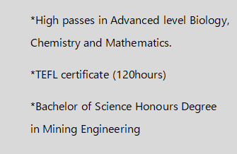 國籍: 津巴布韋       求職意向: 教師