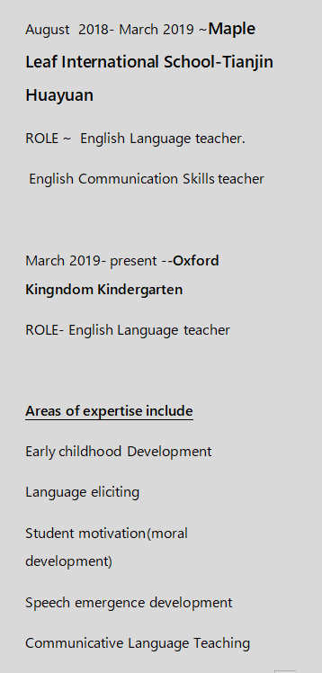 國籍: 其他       求職意向: 教師