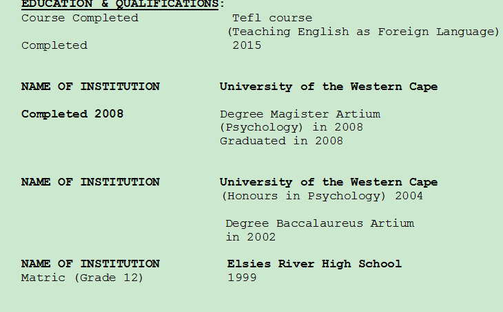 國(guó)籍: 津巴布韋 求職意向: 教師
