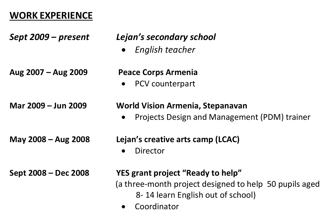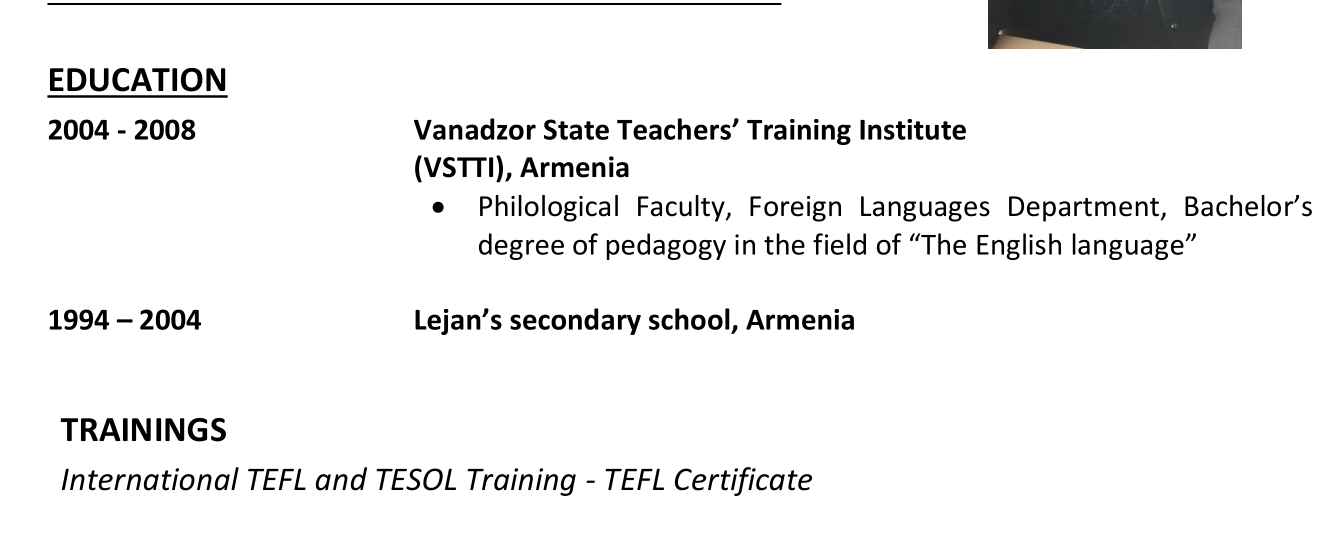 國籍: 亞美尼亞 求職意向: 教師