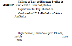 College of Law and Business Studies dr Lazar Vrkatic Department for English studies 2018 – 2019 Teaching assistant