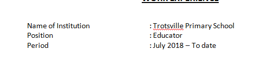 國(guó)籍: 南非 求職意向: 教師
