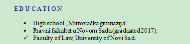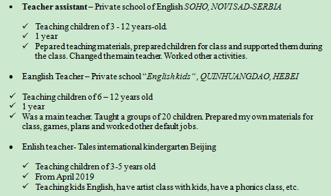 國籍: 塞爾維亞 求職意向: 教師