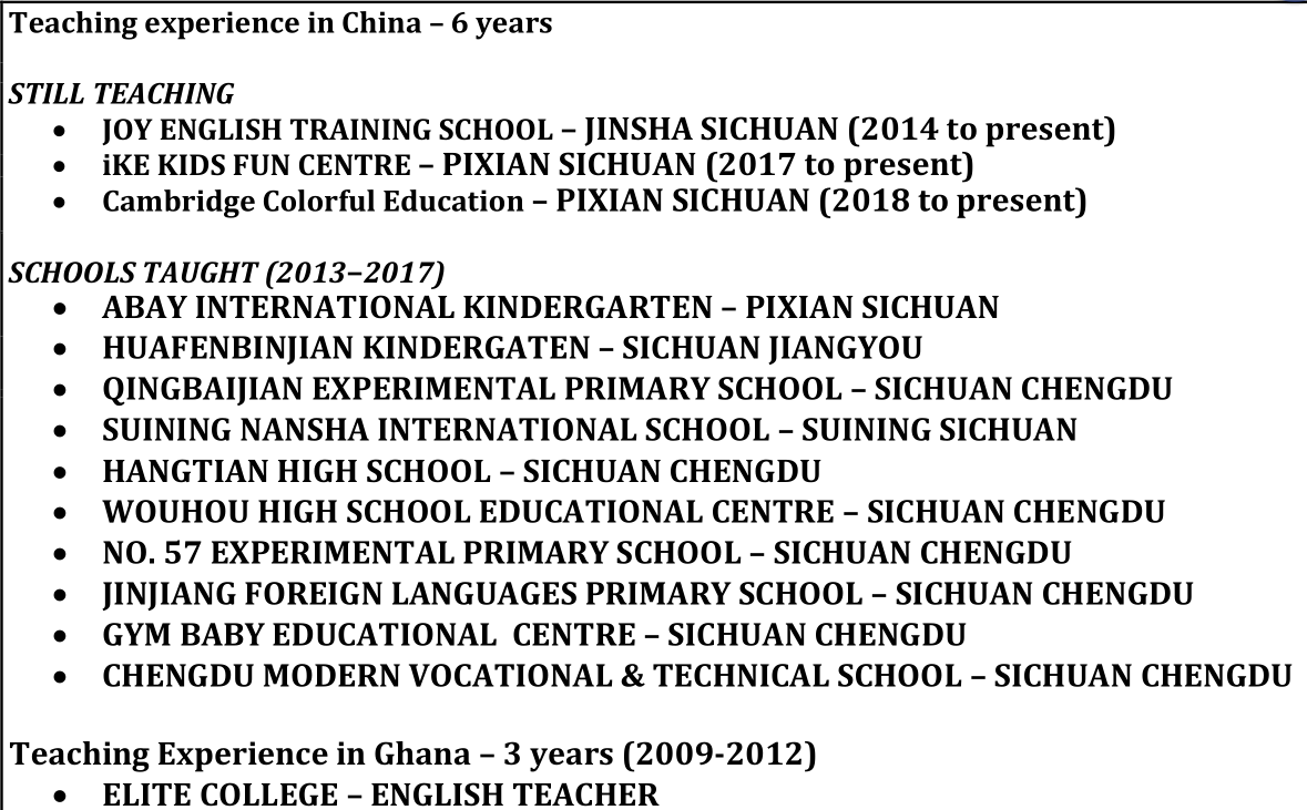 IKOBBY+加納男學生+博士,有TEFL,6年幼兒園、培訓機構教學經(jīng)驗+自理學生簽,后期辦理工簽+求職任何辦理工簽的地方+目前在成都,明年2月到崗 |