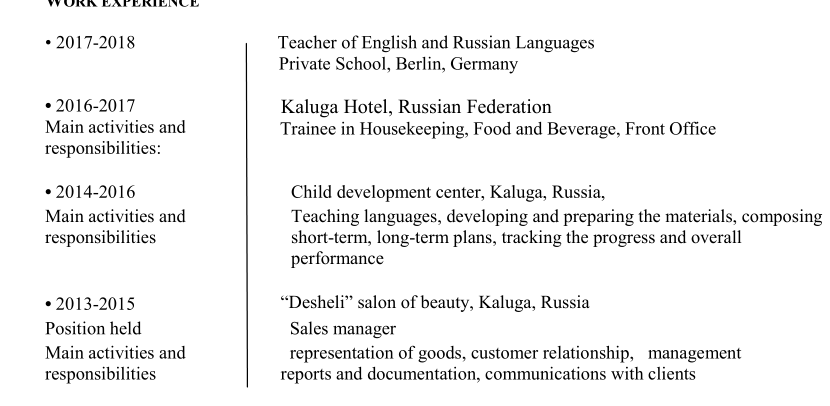 國籍: 俄羅斯 求職意向: 教師