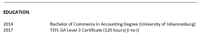 國籍: 南非 求職意向: 教師