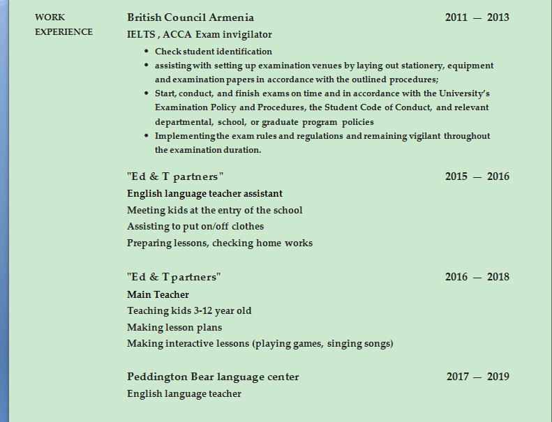 Masters degree of Marketing and Business Organization Armenian State University of Economics Part-time study