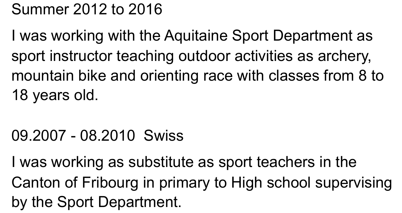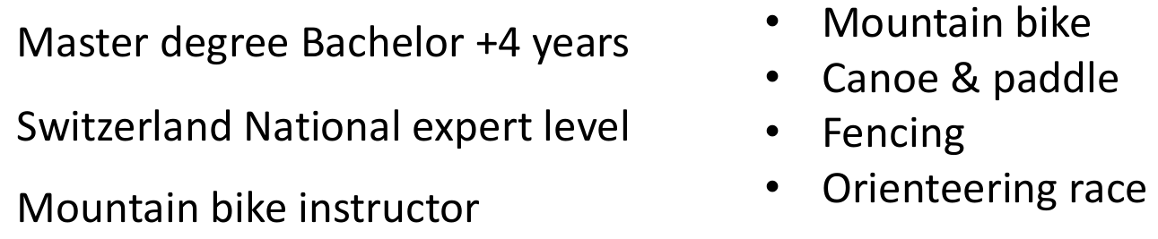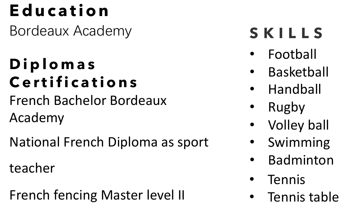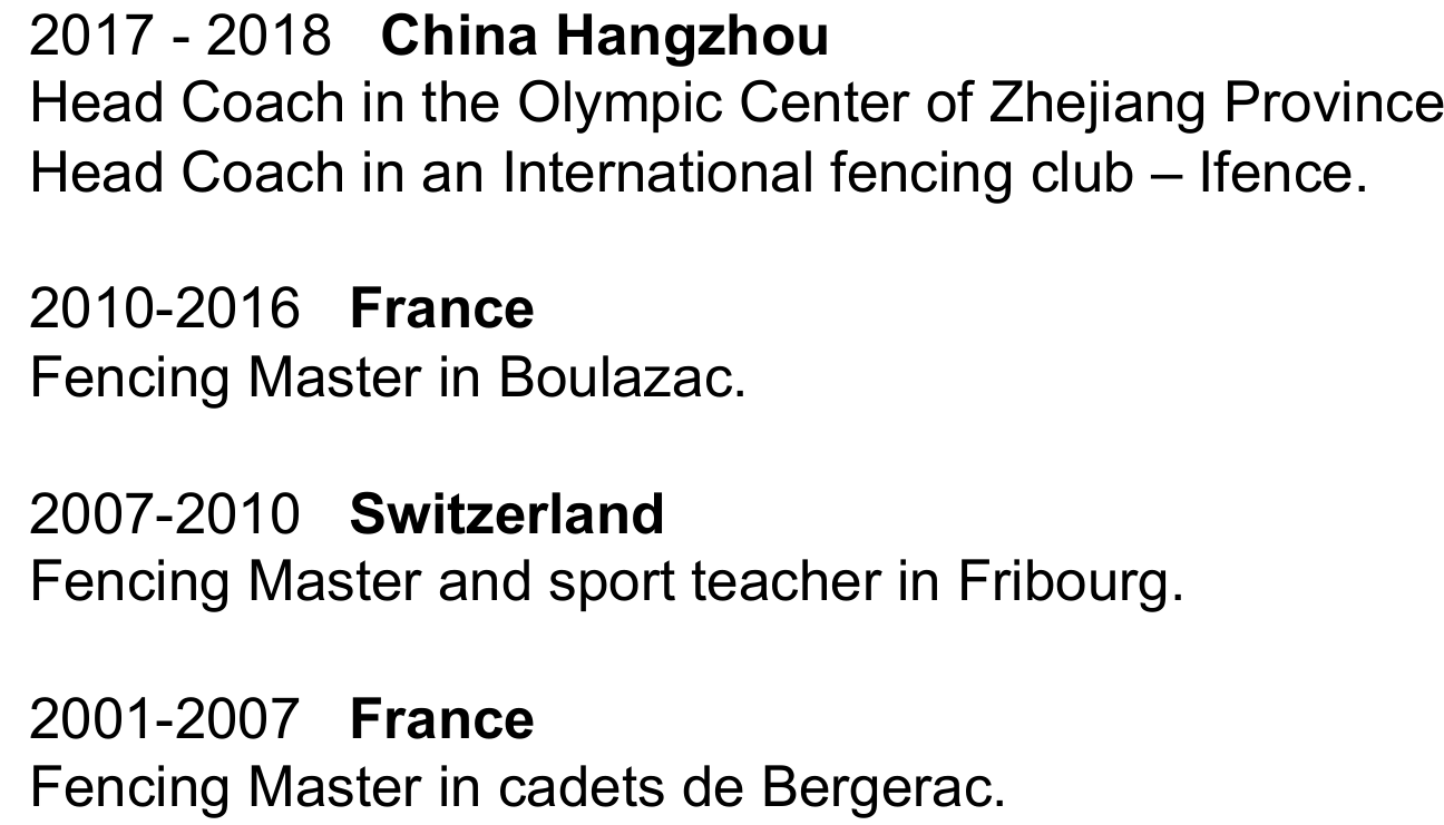 Marc+法國(guó),西班牙雙國(guó)籍男+最高學(xué)位碩士+法國(guó)擊劍大事二級(jí),山地自行車教練,超長(zhǎng)各種體育(籃球,手球,排球,羽毛球等);有體育老師經(jīng)驗(yàn),曾是上海國(guó)際比賽教練,浙江奧林匹克中心領(lǐng)導(dǎo)+教學(xué)類工簽(如果不在廣州需要轉(zhuǎn)聘)+求職杭州最好,其他城市也行+目前在廣州,可盡快到崗~發(fā)音很棒 |