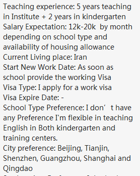現(xiàn)在伊朗,工簽資料齊全,求職地不限。 |