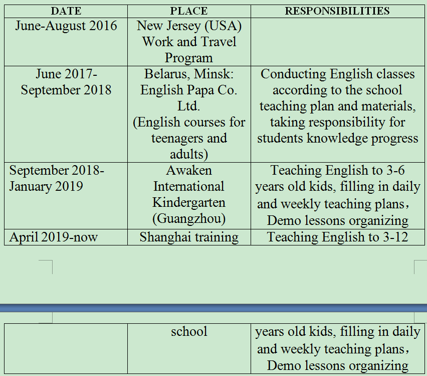 國(guó)籍: 澳大利亞 求職意向: 教師