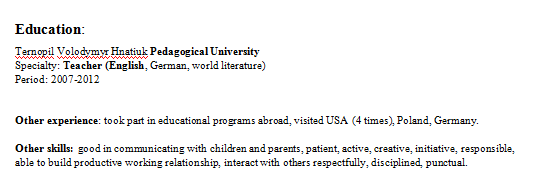 國(guó)籍: 俄羅斯 求職意向: 教師