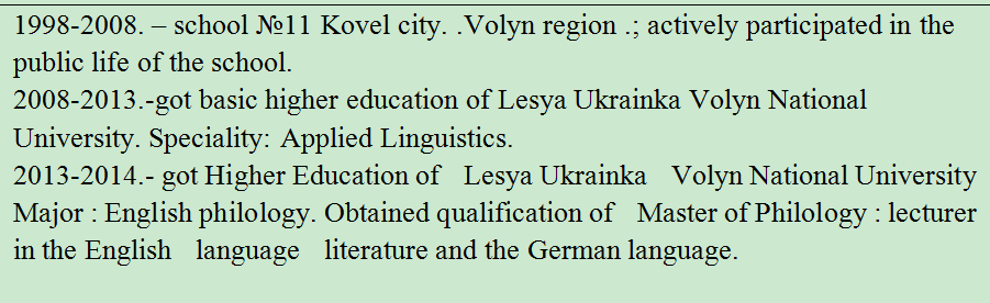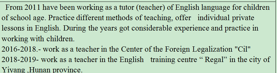 國籍: 白俄羅斯 求職意向: 教師
