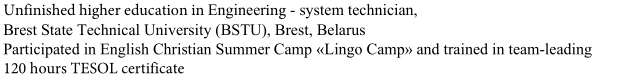 國(guó)籍: 白俄羅斯 求職意向: 教師