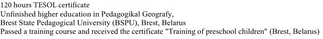 到崗: 越快越好 意向地點(diǎn): 幼兒園職位