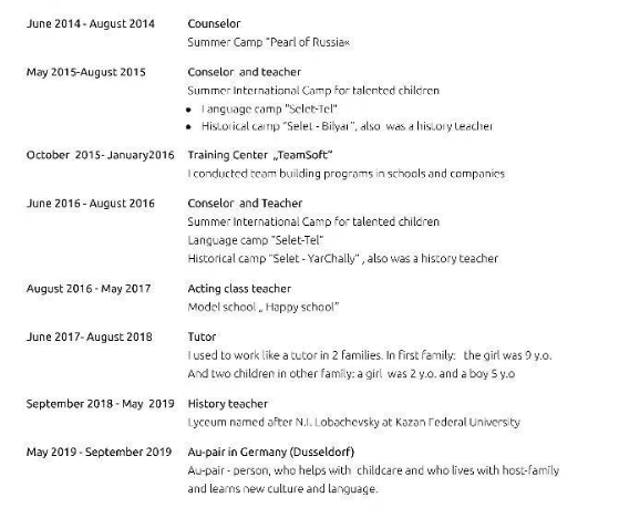 國籍: 俄羅斯 求職意向: 教師