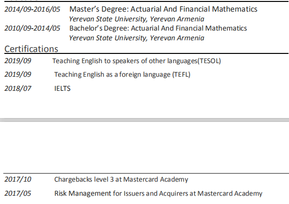 國(guó)籍: 亞美尼亞 求職意向: 教師