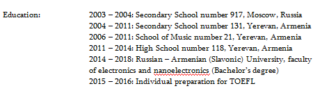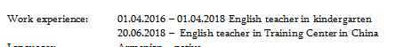 國(guó)籍: 亞美尼亞 求職意向: 教師