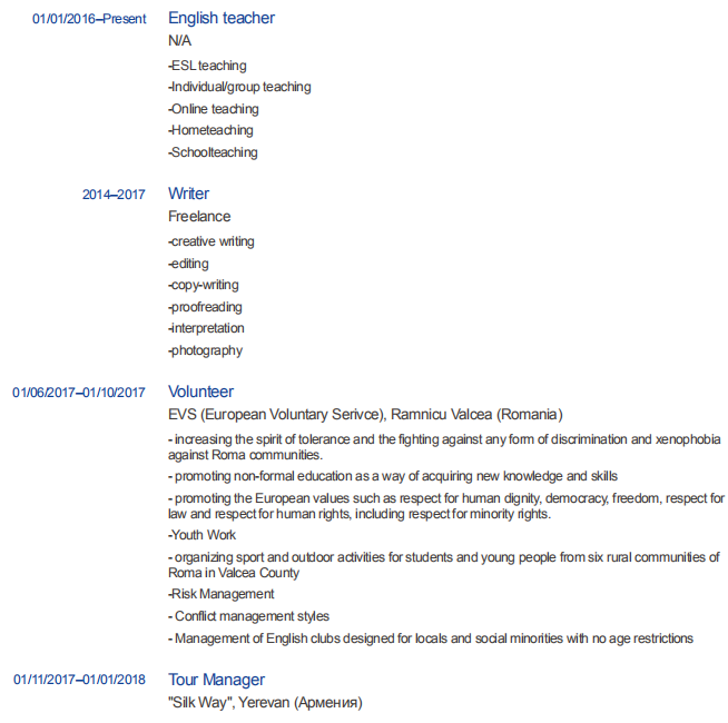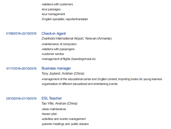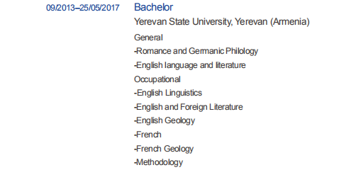 國籍: 亞美尼亞 求職意向: 教師