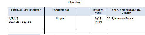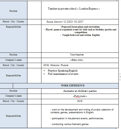 國籍: 俄羅斯 求職意向: 教師