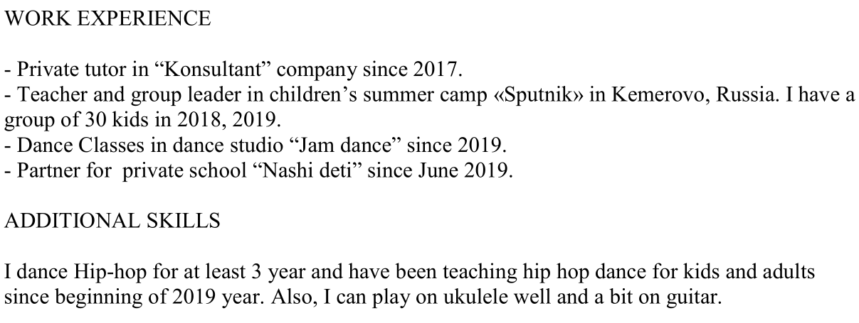 國(guó)籍: 俄羅斯 求職意向: 教師