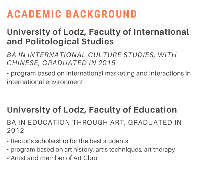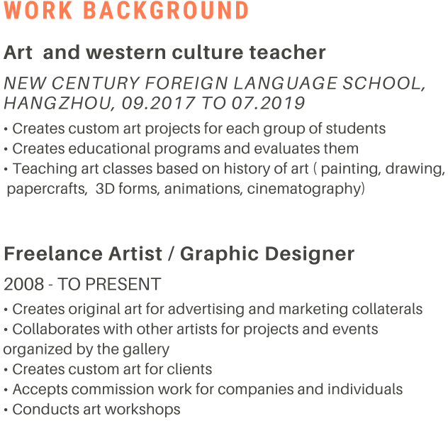 Ola歐蘭+波蘭女+藝術(shù)專業(yè)本科,有繪畫教學(xué)經(jīng)驗,擅長繪畫,平面設(shè)計,書法和攝影+工簽資料齊全+求職深圳,上海,成都,北京,蘇州,天津都可以,想在國際小學(xué)做美術(shù)老師,幼兒園需要的話也可以+目前在本國,2020.01月到崗 |