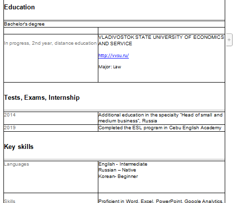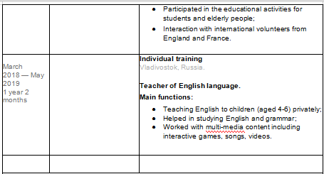 國籍: 俄羅斯 求職意向: 教師