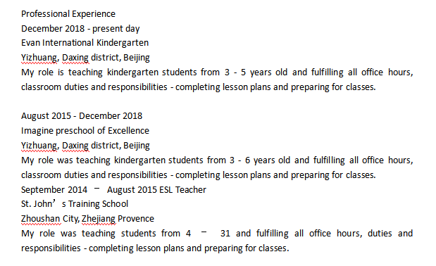 國籍: 其他 求職意向: 教師