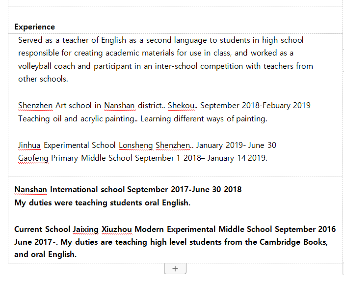 國籍: 其他 求職意向: 教師