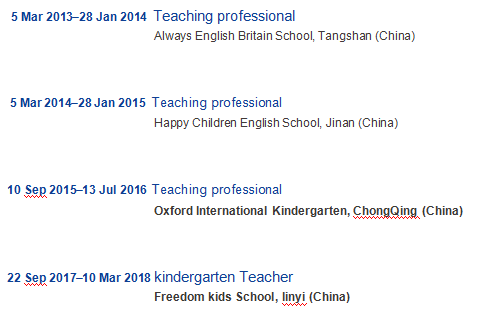 國(guó)籍: 其他 求職意向: 教師