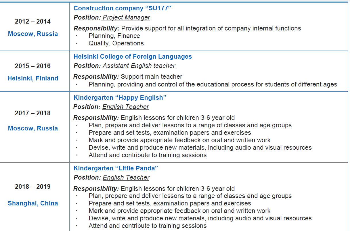 國(guó)籍: 俄羅斯 求職意向: 教師
