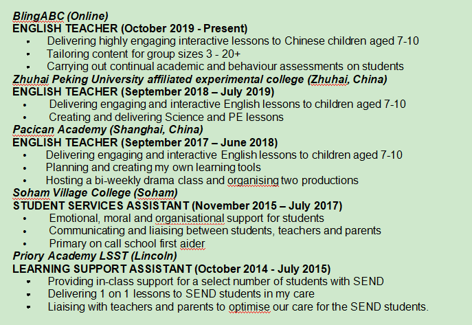 國(guó)籍: 亞美尼亞 求職意向: 教師