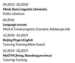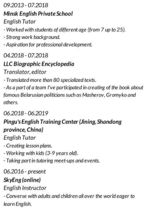 國籍: 俄羅斯 求職意向: 教師