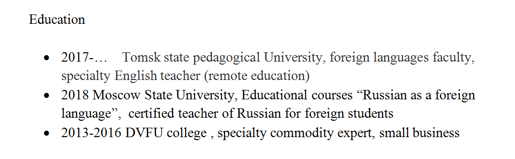 國(guó)籍: 俄羅斯 求職意向: 教師