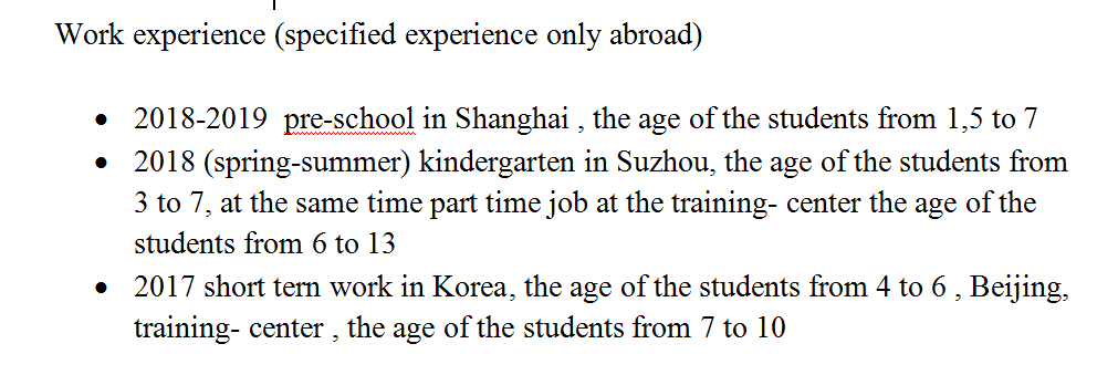 工作經(jīng)驗(yàn)豐富,到崗快,穩(wěn)定,喜歡小朋友 |
