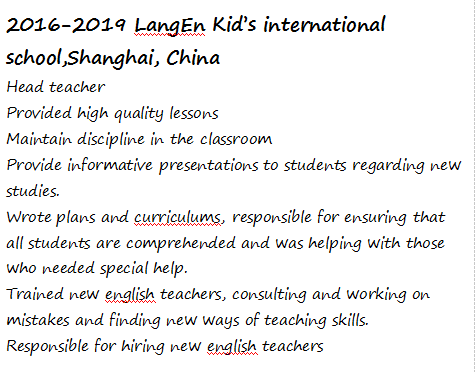 國籍: 俄羅斯 求職意向: 教師