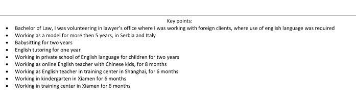 國籍: 俄羅斯 求職意向: 教師